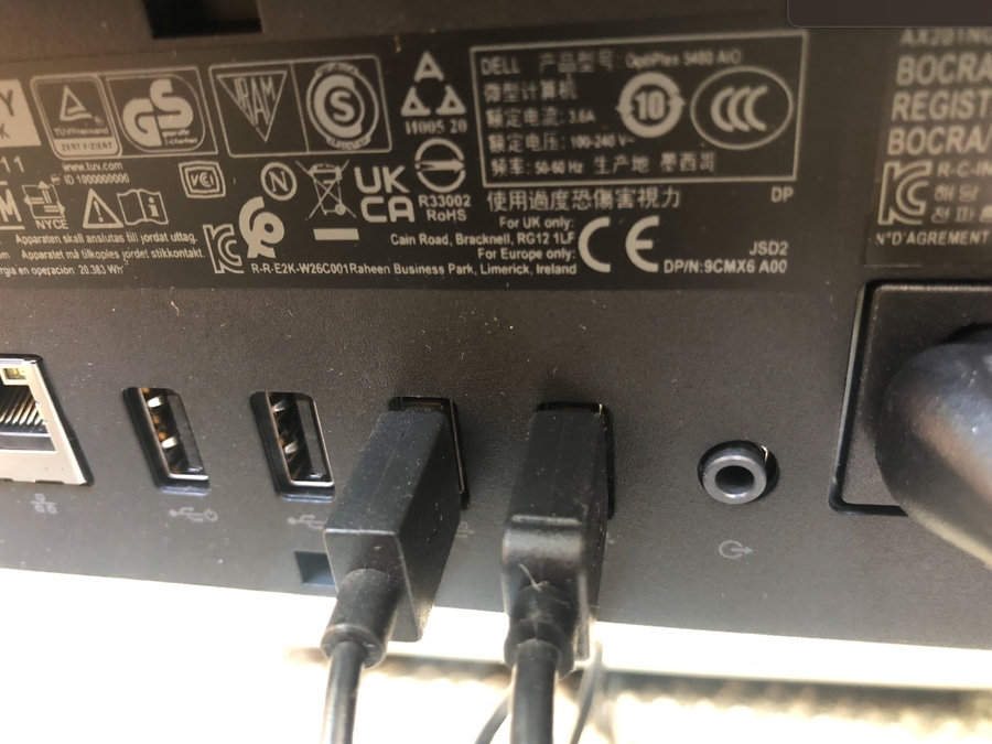 If you need to connect your earphones to the kiosk it's easy. You may want to connect earphones to hear better or have more privacy. You can find the earphone jack on the bottom of the back of the kiosk's monitor. The earphone jack should be located between the power cord and the keyboard and mouse cords.