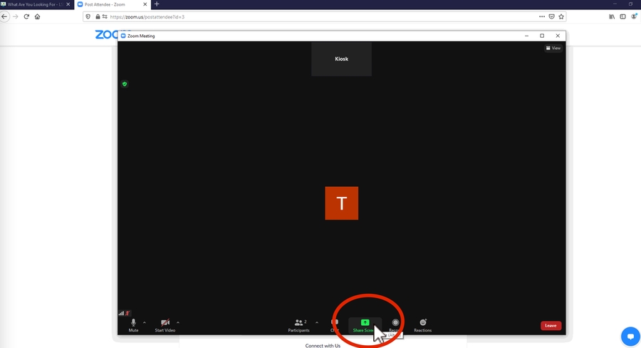 Once you have joined your meeting, look for the green "Share Screen" button on your control panel.